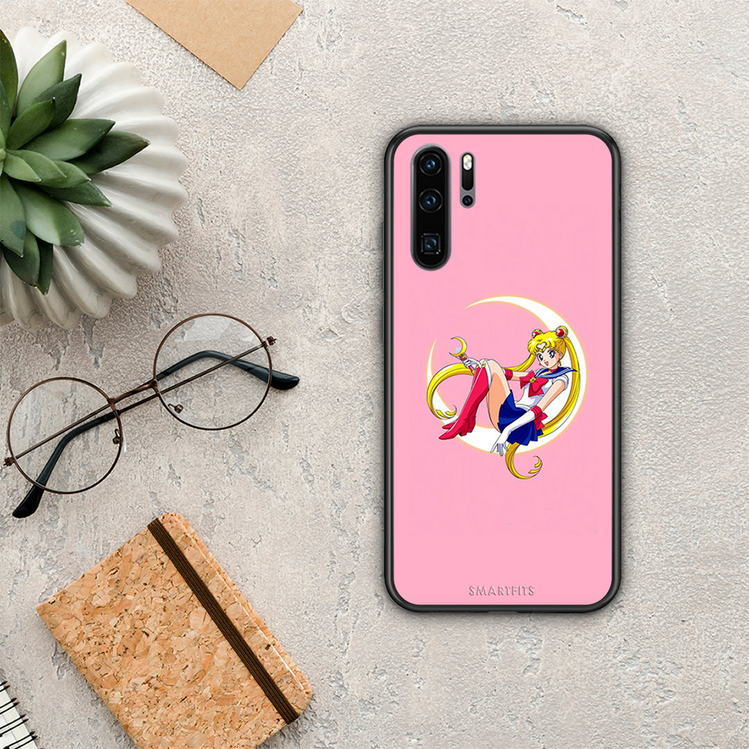Θήκη Huawei P30 Pro Moon Girl από τη Smartfits με σχέδιο στο πίσω μέρος και μαύρο περίβλημα | Huawei P30 Pro Moon Girl case with colorful back and black bezels