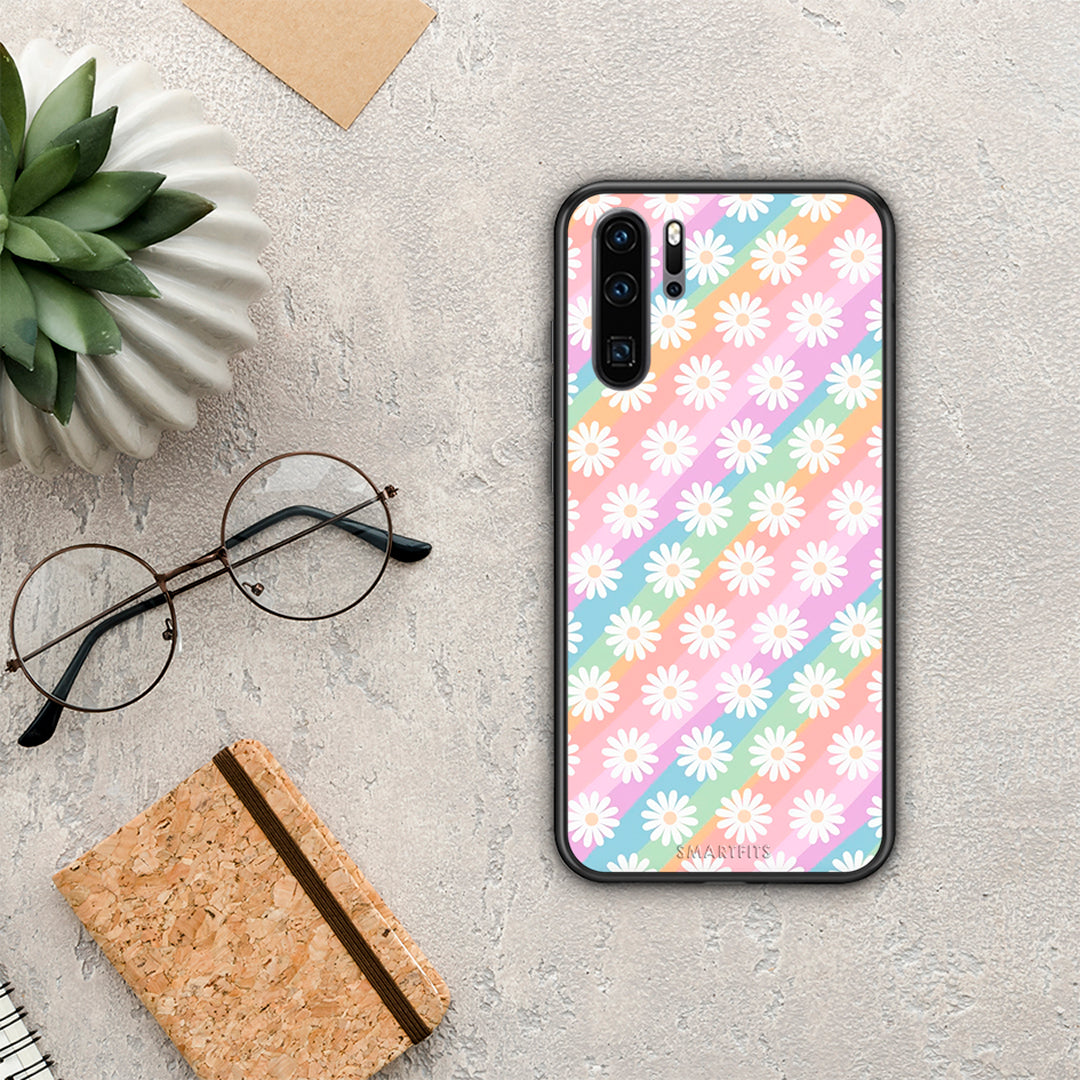 Θήκη Huawei P30 Pro White Daisies από τη Smartfits με σχέδιο στο πίσω μέρος και μαύρο περίβλημα | Huawei P30 Pro White Daisies case with colorful back and black bezels