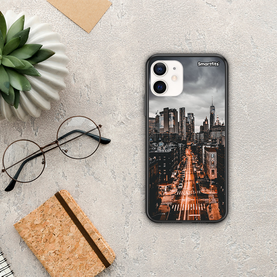 Θήκη iPhone 12 Mini City Lights από τη Smartfits με σχέδιο στο πίσω μέρος και μαύρο περίβλημα | iPhone 12 Mini City Lights case with colorful back and black bezels