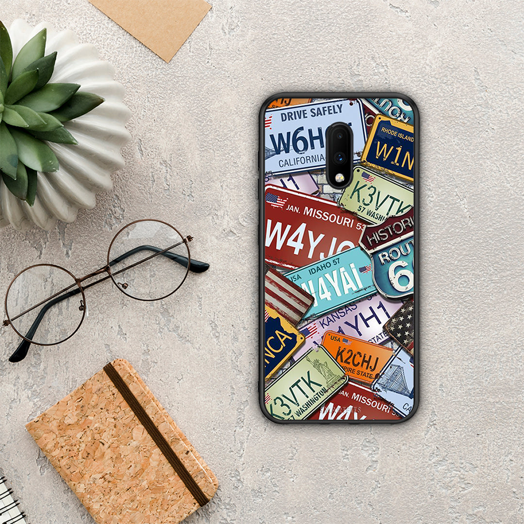 Θήκη OnePlus 7 Car Plates από τη Smartfits με σχέδιο στο πίσω μέρος και μαύρο περίβλημα | OnePlus 7 Car Plates case with colorful back and black bezels