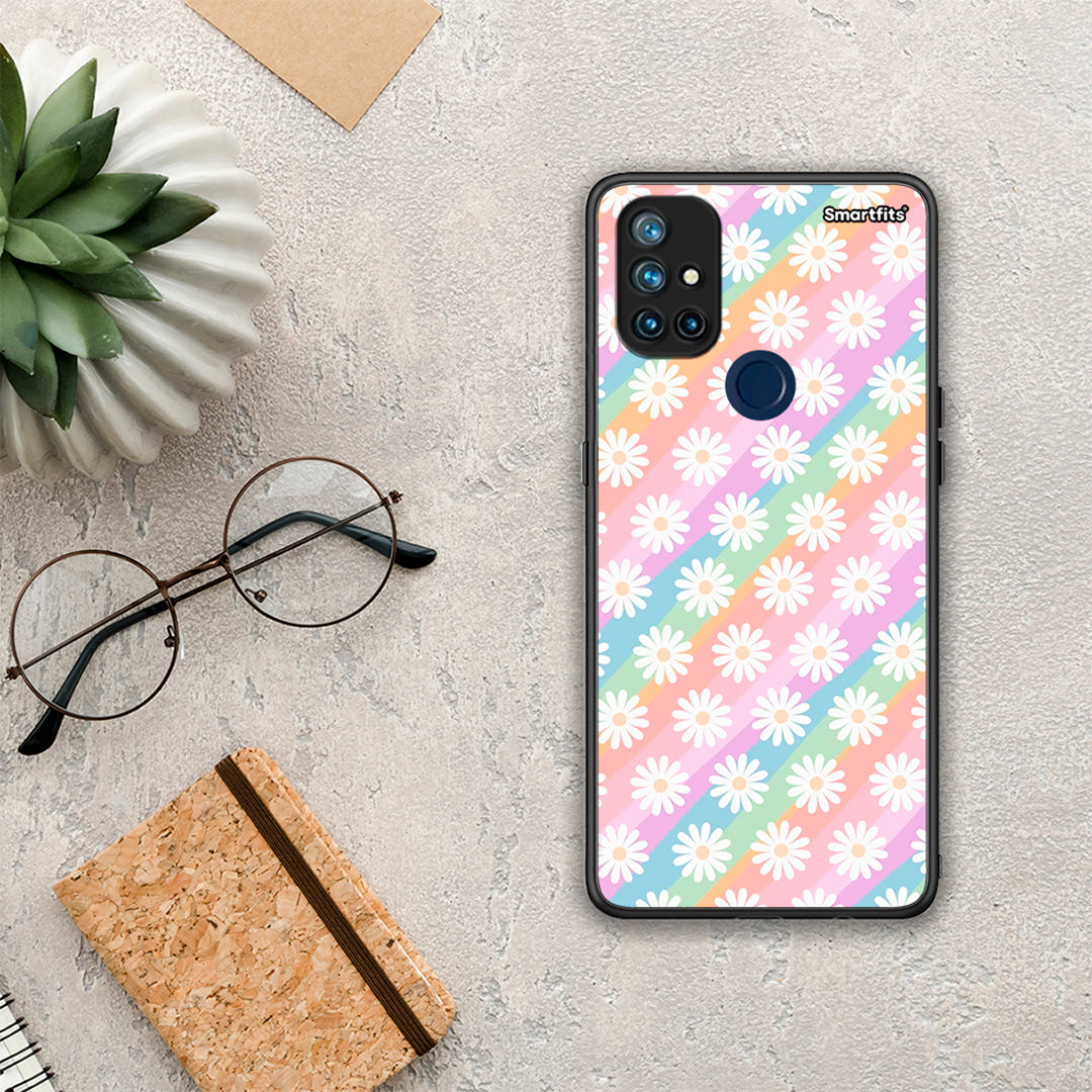 Θήκη OnePlus Nord N10 5G White Daisies από τη Smartfits με σχέδιο στο πίσω μέρος και μαύρο περίβλημα | OnePlus Nord N10 5G White Daisies case with colorful back and black bezels