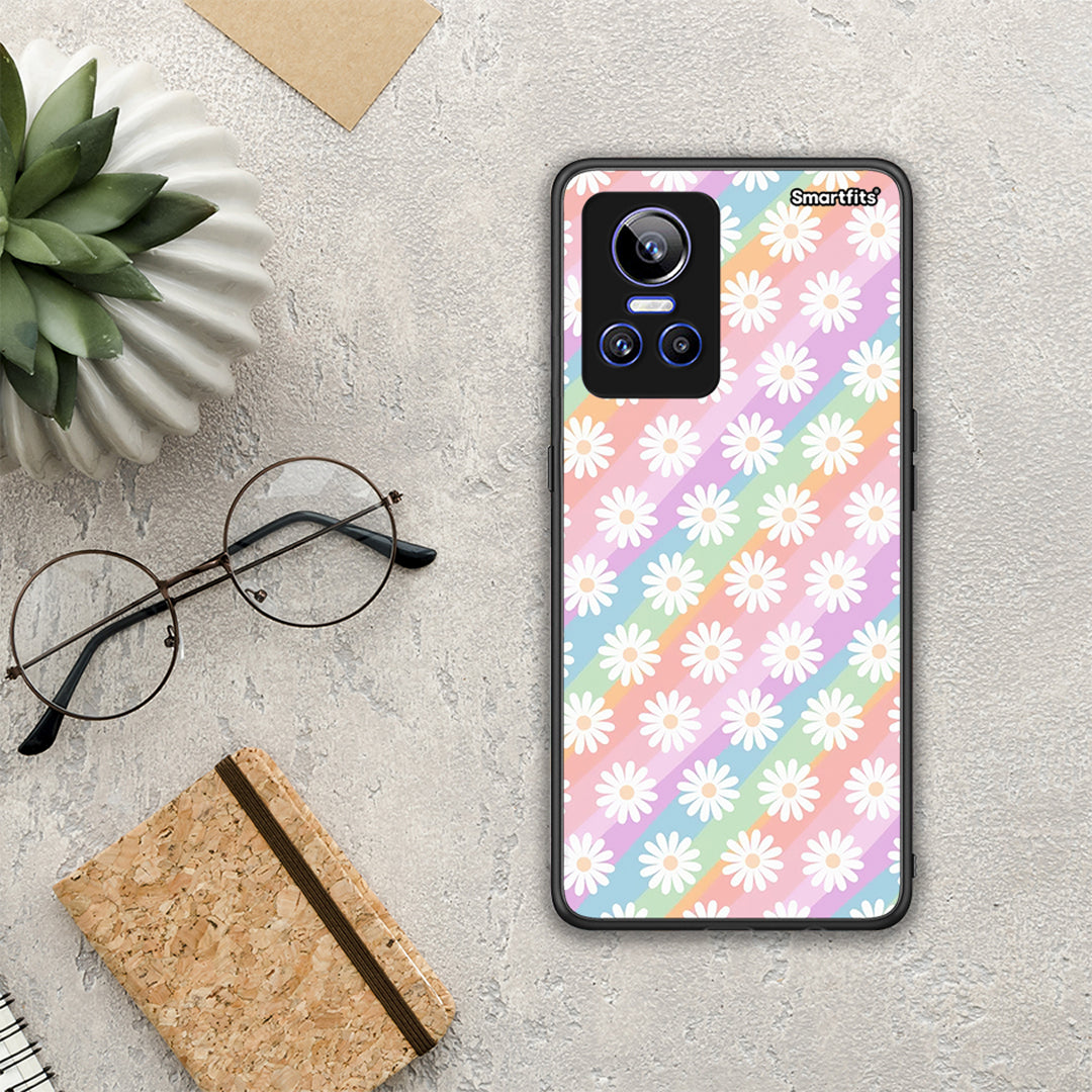 Θήκη Realme GT Neo 3 White Daisies από τη Smartfits με σχέδιο στο πίσω μέρος και μαύρο περίβλημα | Realme GT Neo 3 White Daisies case with colorful back and black bezels
