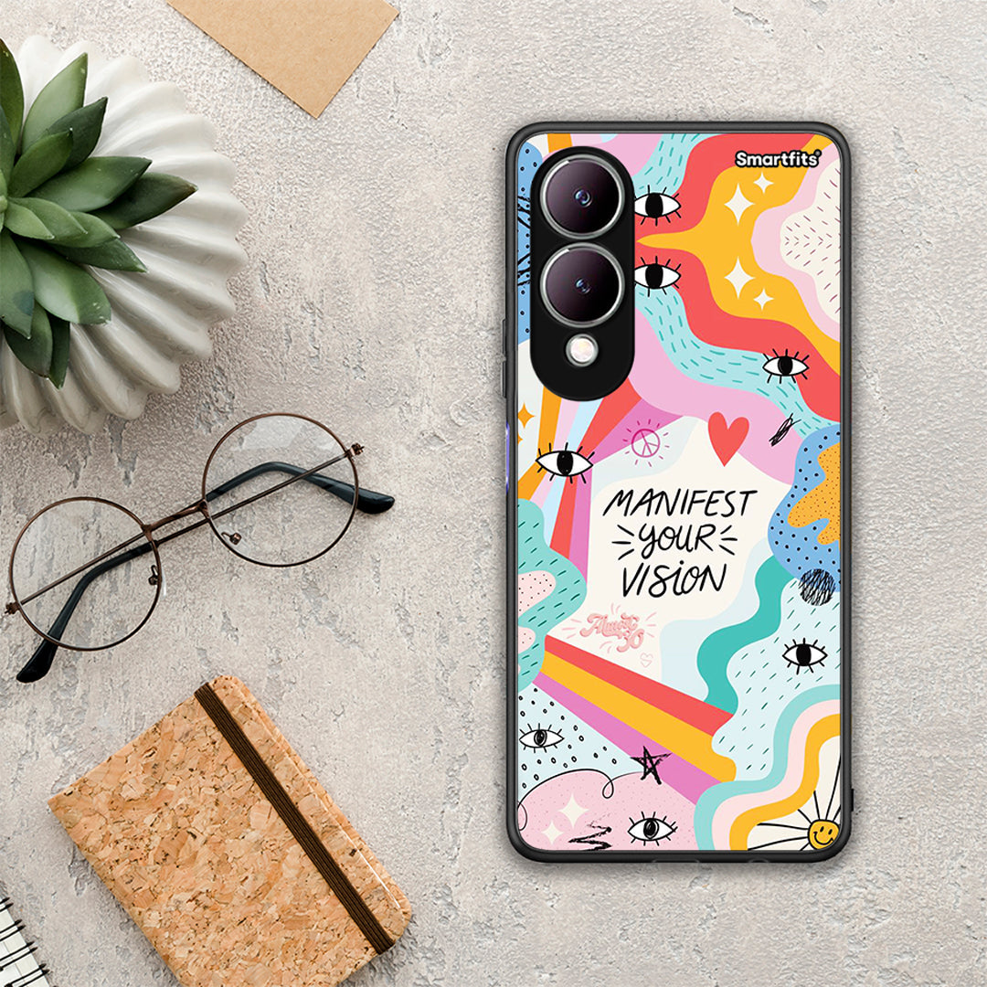 Θήκη Vivo Y17s Manifest Your Vision από τη Smartfits με σχέδιο στο πίσω μέρος και μαύρο περίβλημα | Vivo Y17s Manifest Your Vision case with colorful back and black bezels