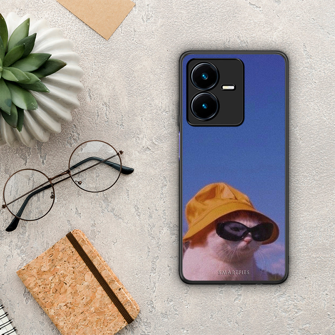 Θήκη Vivo Y22s Cat Diva από τη Smartfits με σχέδιο στο πίσω μέρος και μαύρο περίβλημα | Vivo Y22s Cat Diva case with colorful back and black bezels