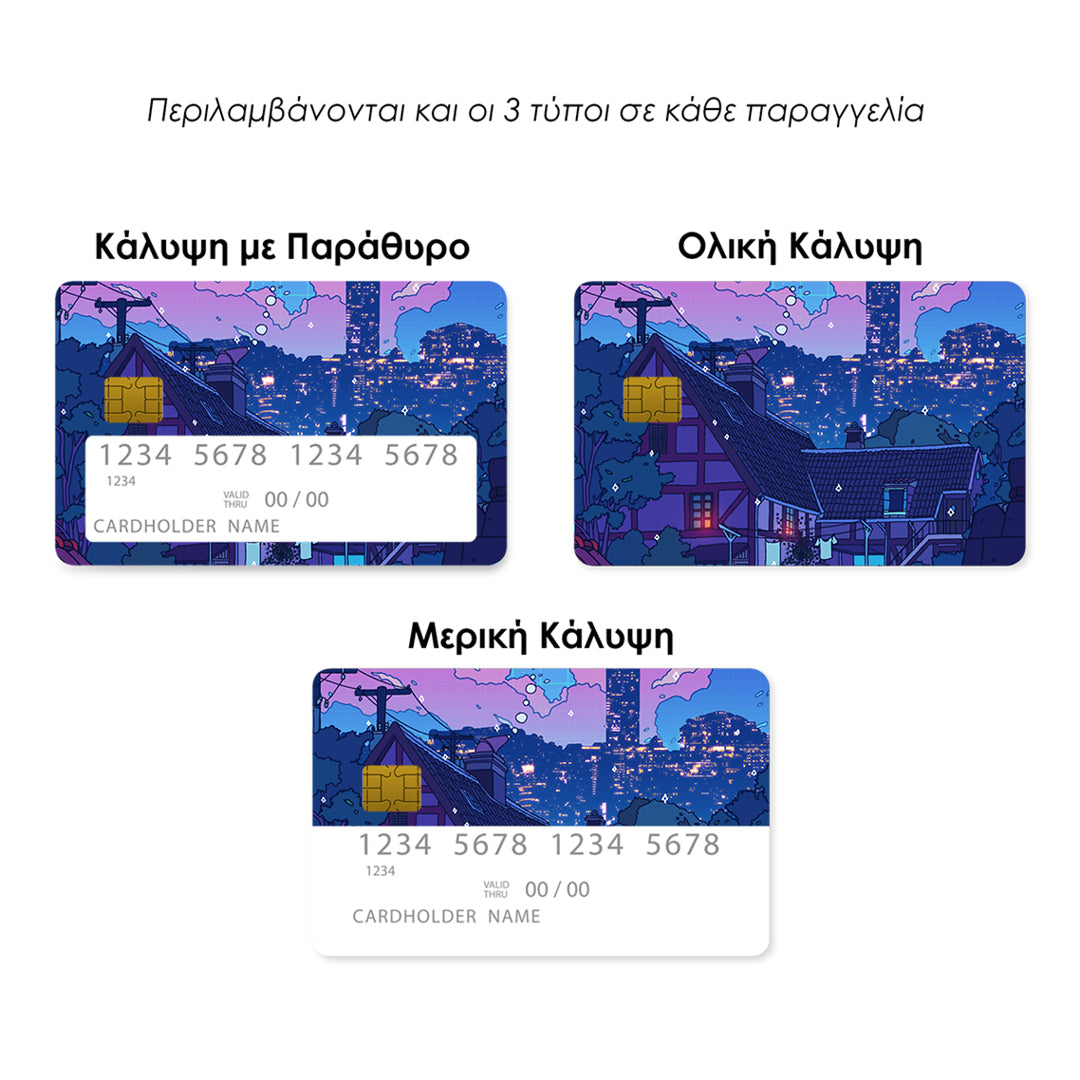 Επικάλυψη Τραπεζικής Κάρτας σε σχέδιο Lofi Night σε λευκό φόντο