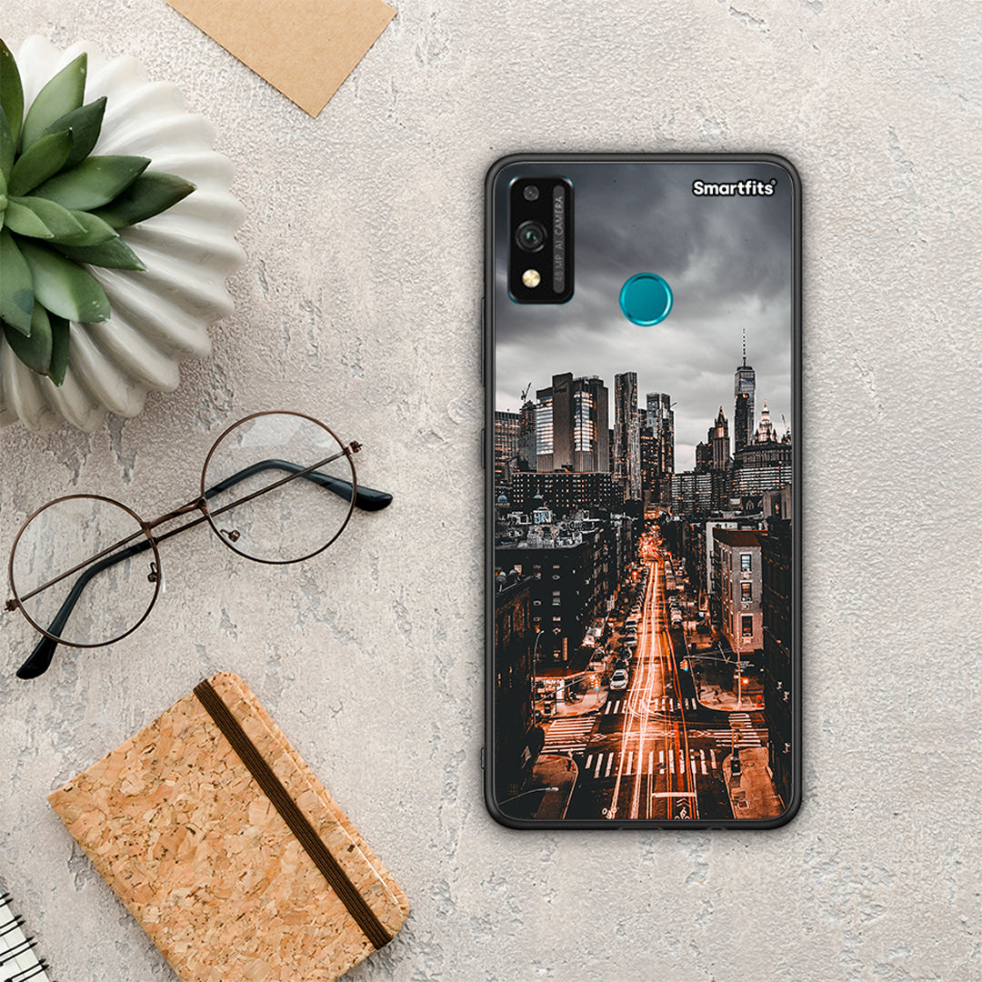 Θήκη Honor 9X Lite City Lights από τη Smartfits με σχέδιο στο πίσω μέρος και μαύρο περίβλημα | Honor 9X Lite City Lights case with colorful back and black bezels
