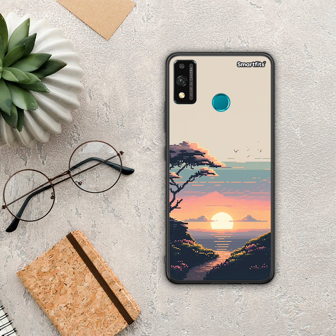 Θήκη Honor 9X Lite Pixel Sunset από τη Smartfits με σχέδιο στο πίσω μέρος και μαύρο περίβλημα | Honor 9X Lite Pixel Sunset case with colorful back and black bezels