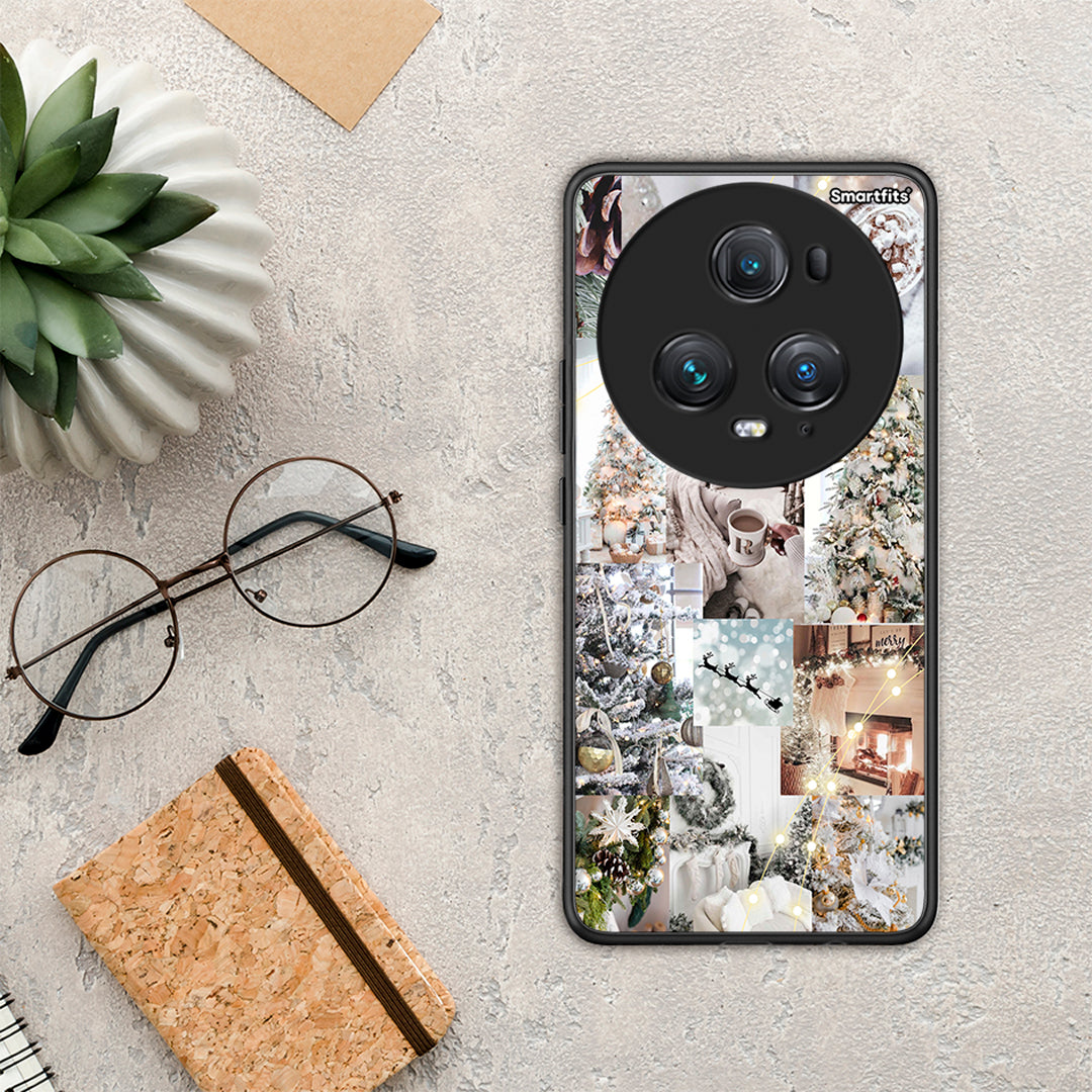 Θήκη Honor Magic5 Pro White Christmas από τη Smartfits με σχέδιο στο πίσω μέρος και μαύρο περίβλημα | Honor Magic5 Pro White Christmas case with colorful back and black bezels