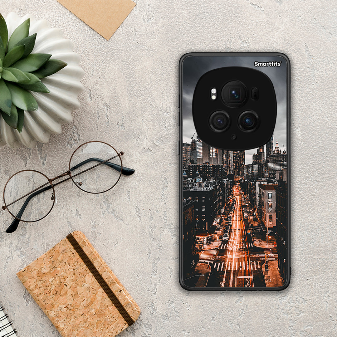 Θήκη Honor Magic6 Pro City Lights από τη Smartfits με σχέδιο στο πίσω μέρος και μαύρο περίβλημα | Honor Magic6 Pro City Lights case with colorful back and black bezels