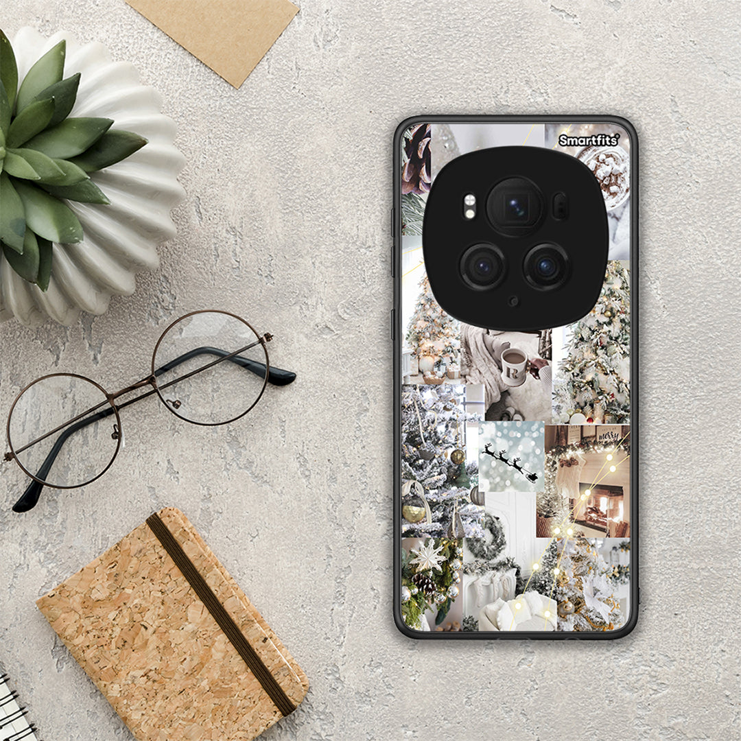 Θήκη Honor Magic6 Pro White Christmas από τη Smartfits με σχέδιο στο πίσω μέρος και μαύρο περίβλημα | Honor Magic6 Pro White Christmas case with colorful back and black bezels