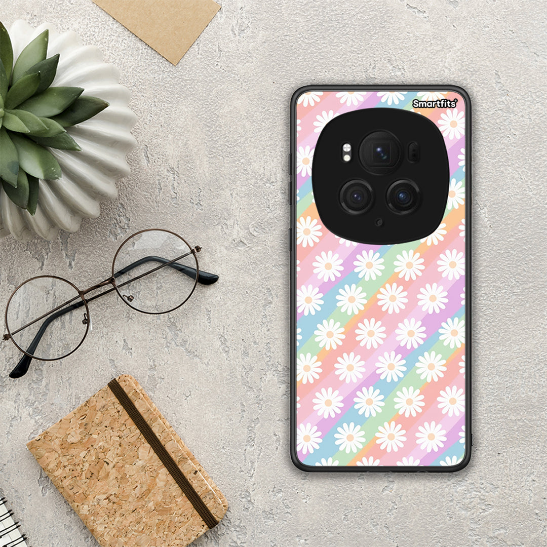 Θήκη Honor Magic6 Pro White Daisies από τη Smartfits με σχέδιο στο πίσω μέρος και μαύρο περίβλημα | Honor Magic6 Pro White Daisies case with colorful back and black bezels