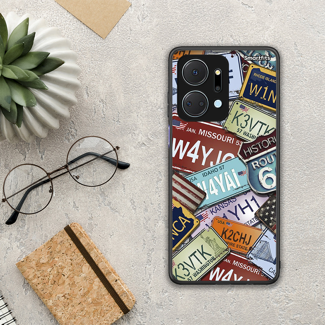 Θήκη Honor X7a Car Plates από τη Smartfits με σχέδιο στο πίσω μέρος και μαύρο περίβλημα | Honor X7a Car Plates case with colorful back and black bezels