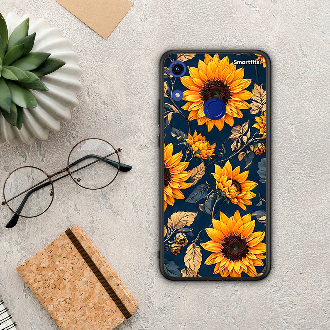 Θήκη Honor 8A Autumn Sunflowers από τη Smartfits με σχέδιο στο πίσω μέρος και μαύρο περίβλημα | Honor 8A Autumn Sunflowers case with colorful back and black bezels