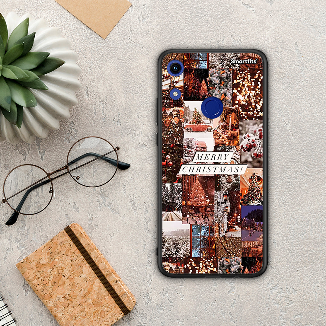 Θήκη Honor 8A Xmas Collage από τη Smartfits με σχέδιο στο πίσω μέρος και μαύρο περίβλημα | Honor 8A Xmas Collage case with colorful back and black bezels