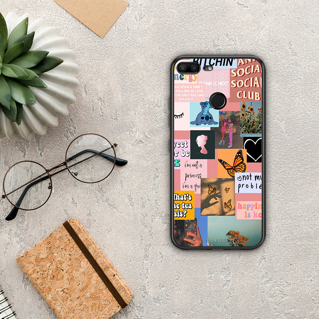 Θήκη Αγίου Βαλεντίνου Honor 9 Lite Collage Bitchin από τη Smartfits με σχέδιο στο πίσω μέρος και μαύρο περίβλημα | Honor 9 Lite Collage Bitchin case with colorful back and black bezels