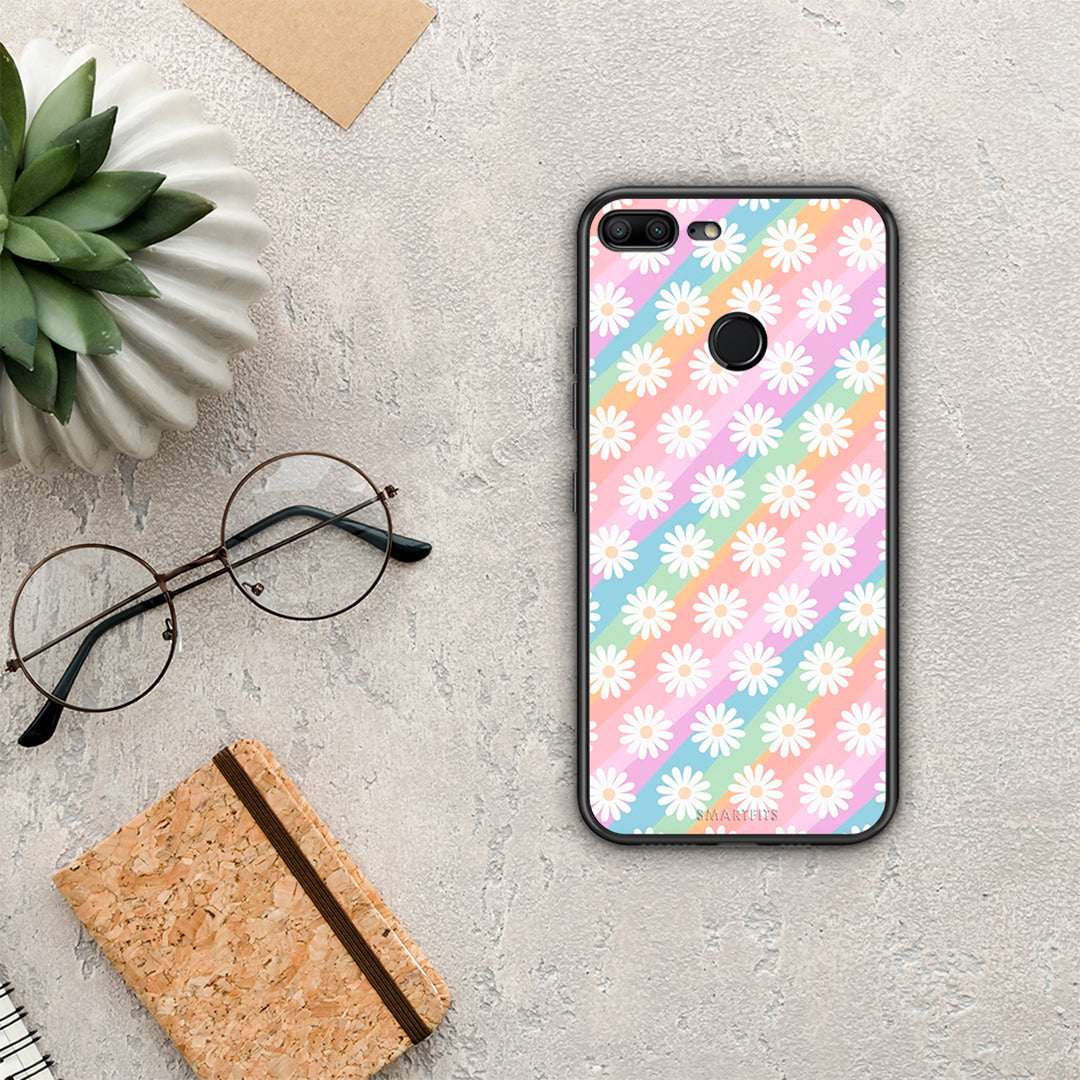 Θήκη Honor 9 Lite White Daisies από τη Smartfits με σχέδιο στο πίσω μέρος και μαύρο περίβλημα | Honor 9 Lite White Daisies case with colorful back and black bezels