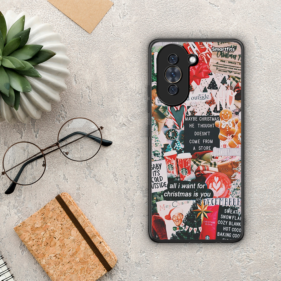 Θήκη Huawei Nova 10 Christmas Happiness από τη Smartfits με σχέδιο στο πίσω μέρος και μαύρο περίβλημα | Huawei Nova 10 Christmas Happiness case with colorful back and black bezels