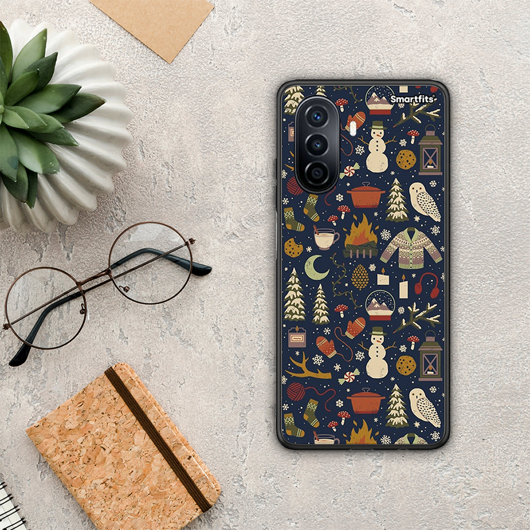 Θήκη Huawei Nova Y70 Christmas Elements από τη Smartfits με σχέδιο στο πίσω μέρος και μαύρο περίβλημα | Huawei Nova Y70 Christmas Elements case with colorful back and black bezels