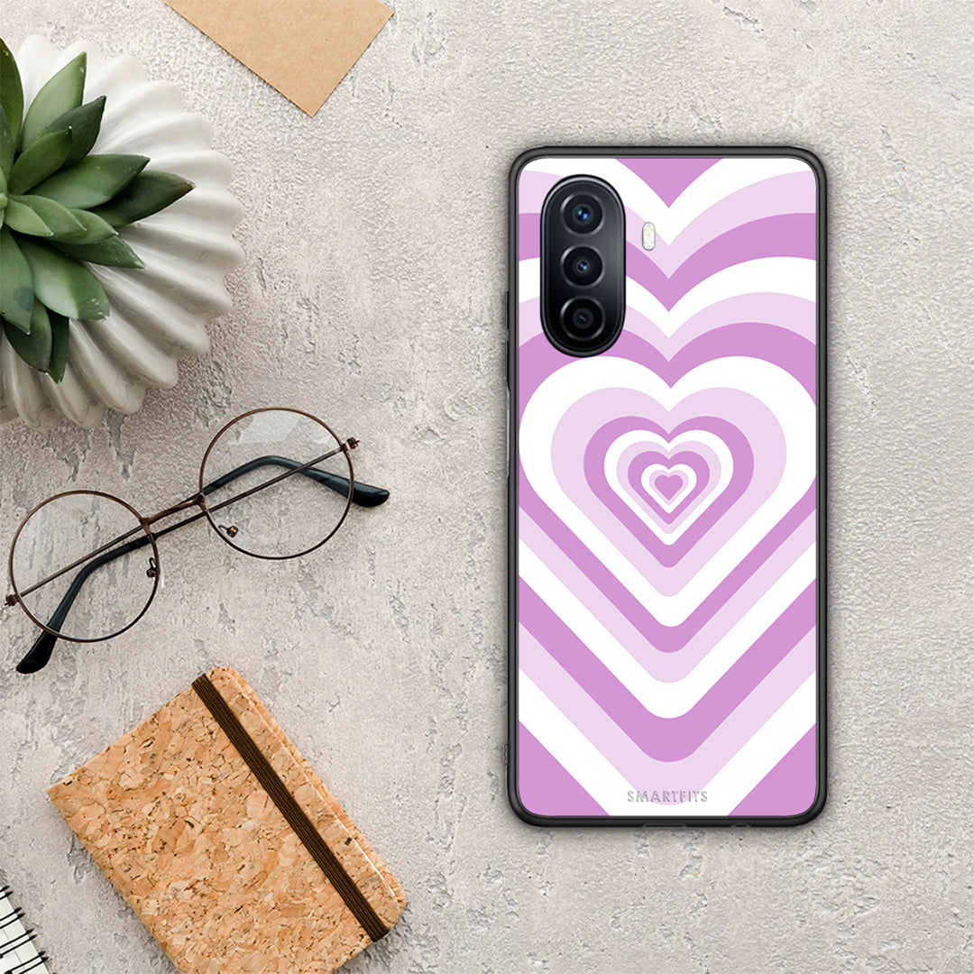 Θήκη Huawei Nova Y70 Lilac Hearts από τη Smartfits με σχέδιο στο πίσω μέρος και μαύρο περίβλημα | Huawei Nova Y70 Lilac Hearts case with colorful back and black bezels