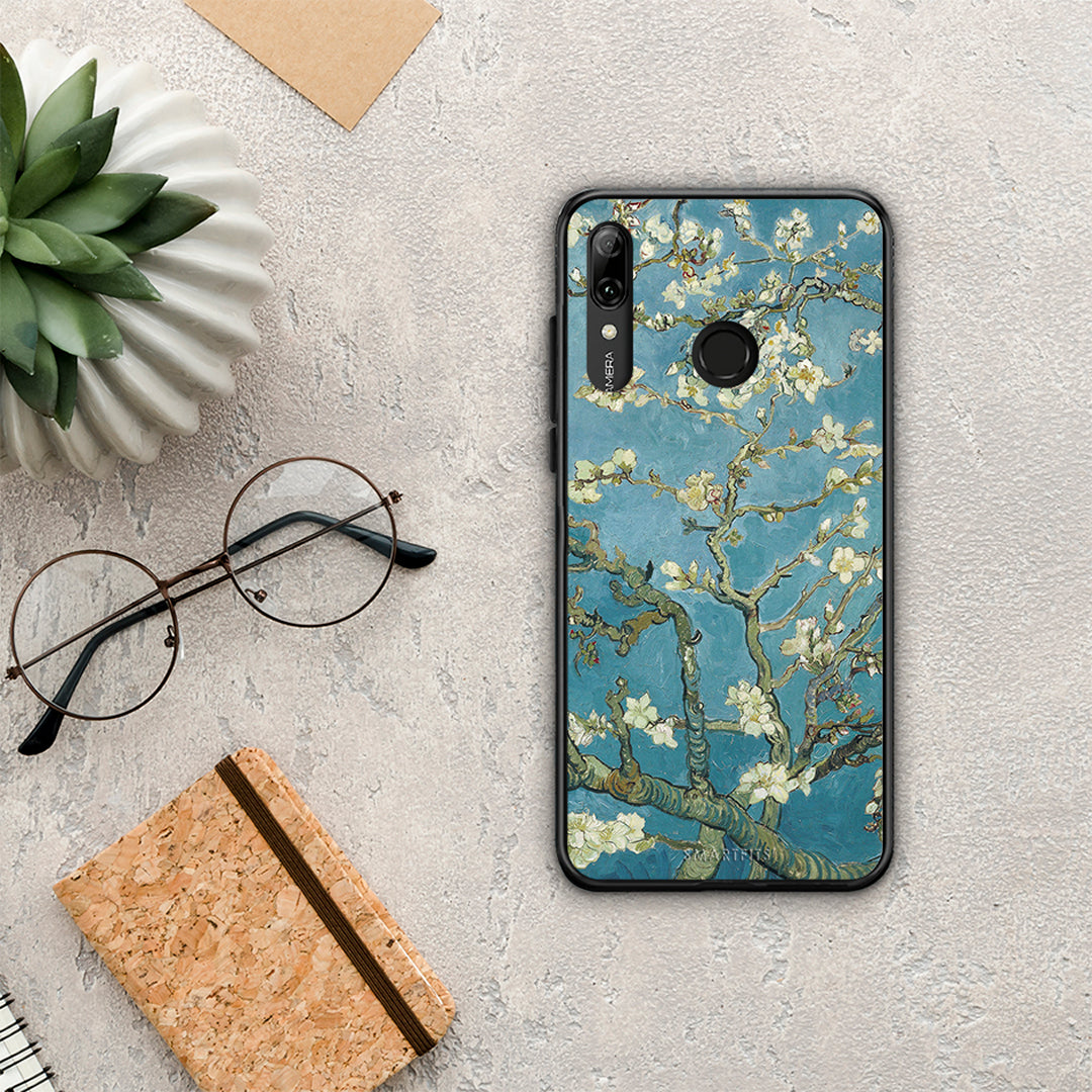 Θήκη Huawei P Smart 2019 White Blossoms από τη Smartfits με σχέδιο στο πίσω μέρος και μαύρο περίβλημα | Huawei P Smart 2019 White Blossoms case with colorful back and black bezels