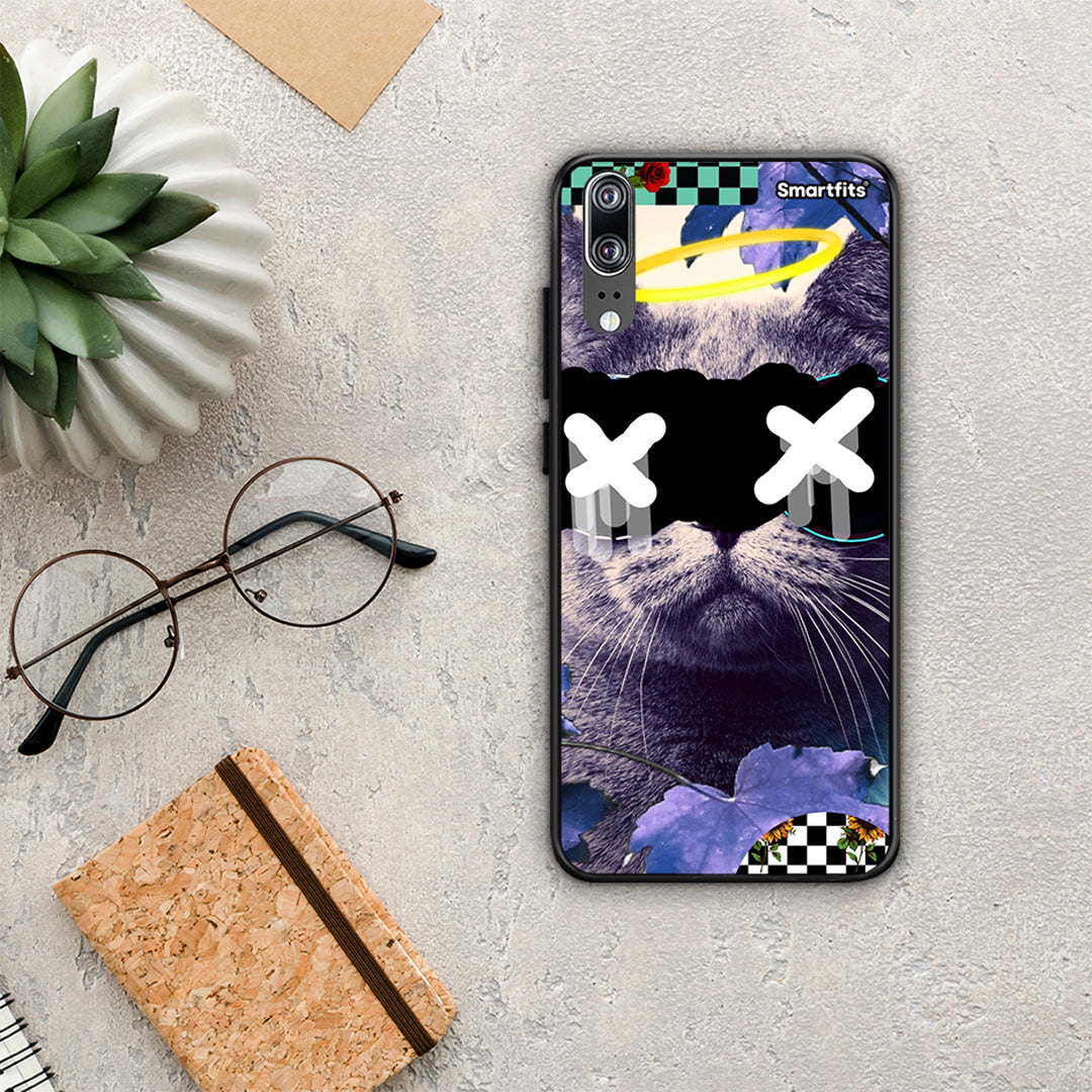 Θήκη Huawei P20 Cat Collage από τη Smartfits με σχέδιο στο πίσω μέρος και μαύρο περίβλημα | Huawei P20 Cat Collage case with colorful back and black bezels