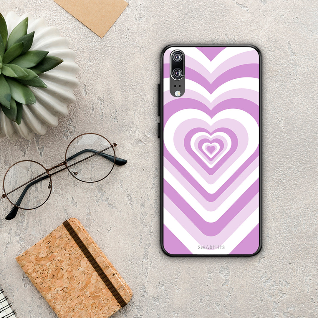 Θήκη Huawei P20 Lilac Hearts από τη Smartfits με σχέδιο στο πίσω μέρος και μαύρο περίβλημα | Huawei P20 Lilac Hearts case with colorful back and black bezels