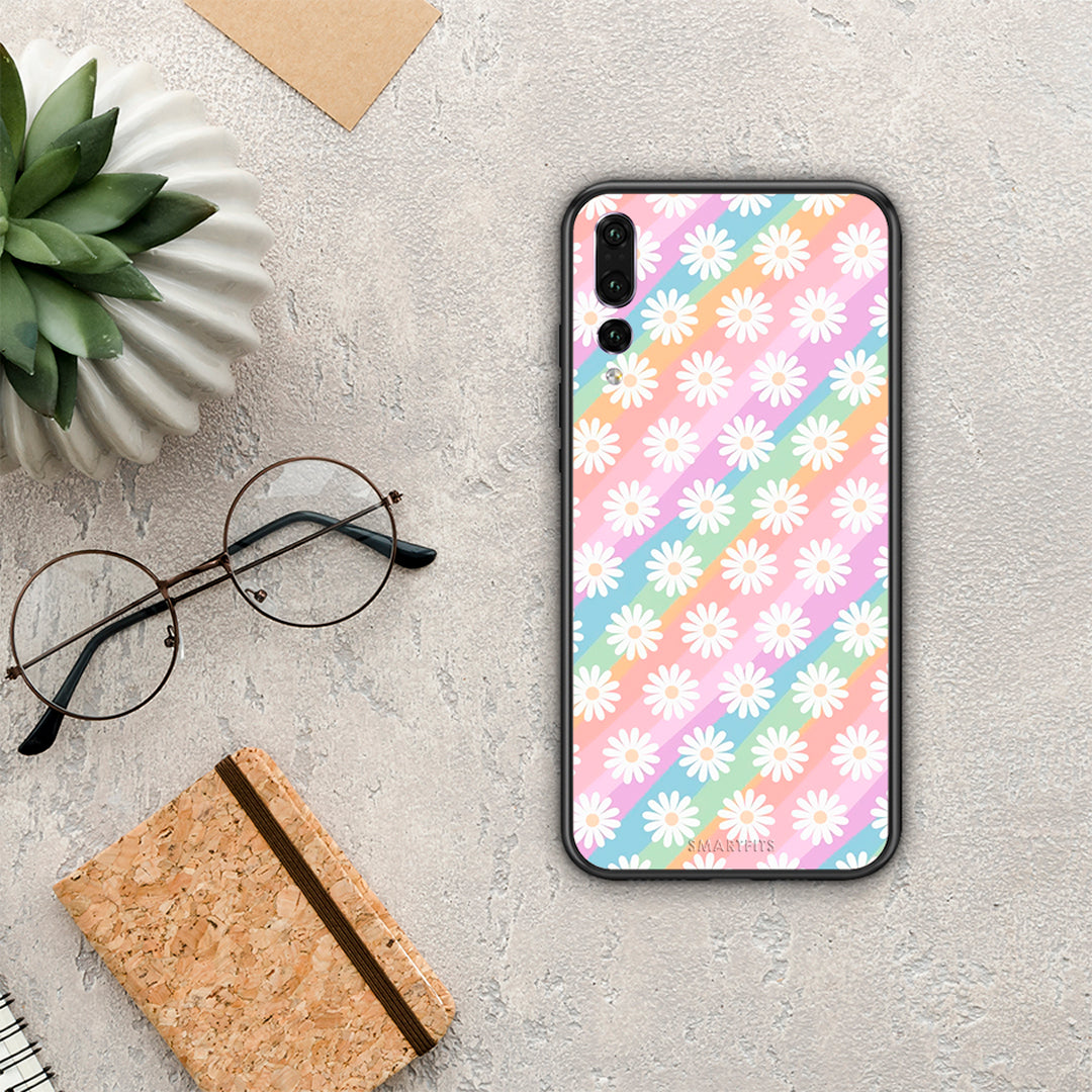 Θήκη Huawei P20 Pro White Daisies από τη Smartfits με σχέδιο στο πίσω μέρος και μαύρο περίβλημα | Huawei P20 Pro White Daisies case with colorful back and black bezels