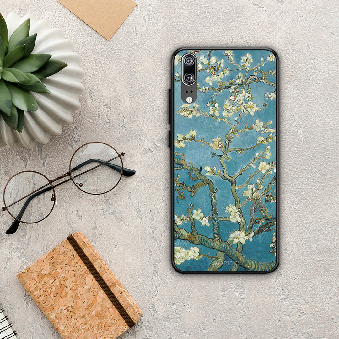 Θήκη Huawei P20 White Blossoms από τη Smartfits με σχέδιο στο πίσω μέρος και μαύρο περίβλημα | Huawei P20 White Blossoms case with colorful back and black bezels