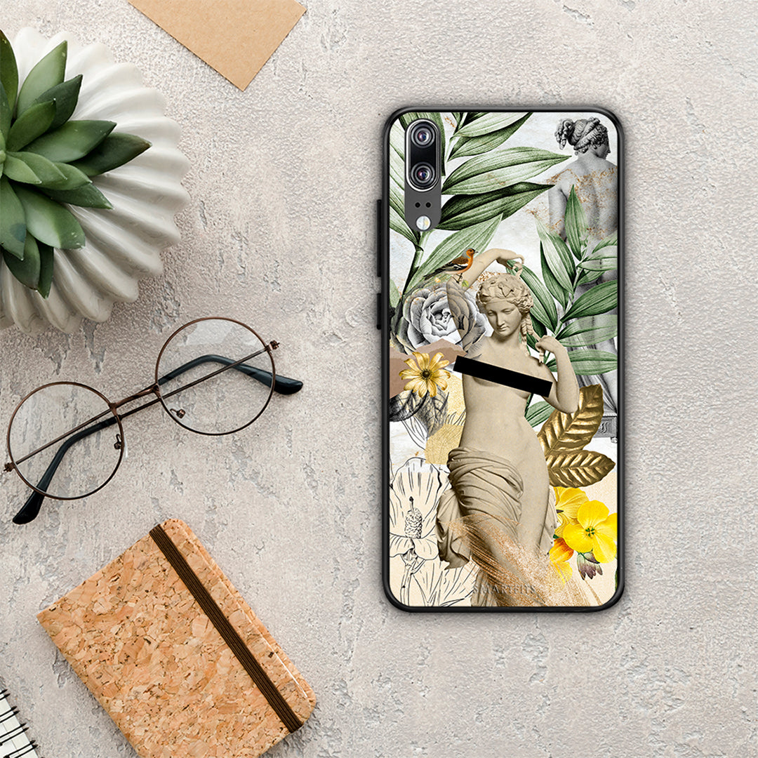 Θήκη Huawei P20 Woman Statue από τη Smartfits με σχέδιο στο πίσω μέρος και μαύρο περίβλημα | Huawei P20 Woman Statue case with colorful back and black bezels