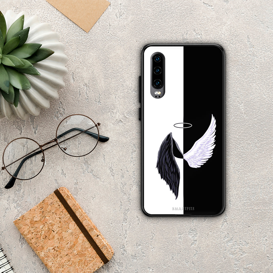 Θήκη Huawei P30 Angels Demons από τη Smartfits με σχέδιο στο πίσω μέρος και μαύρο περίβλημα | Huawei P30 Angels Demons case with colorful back and black bezels