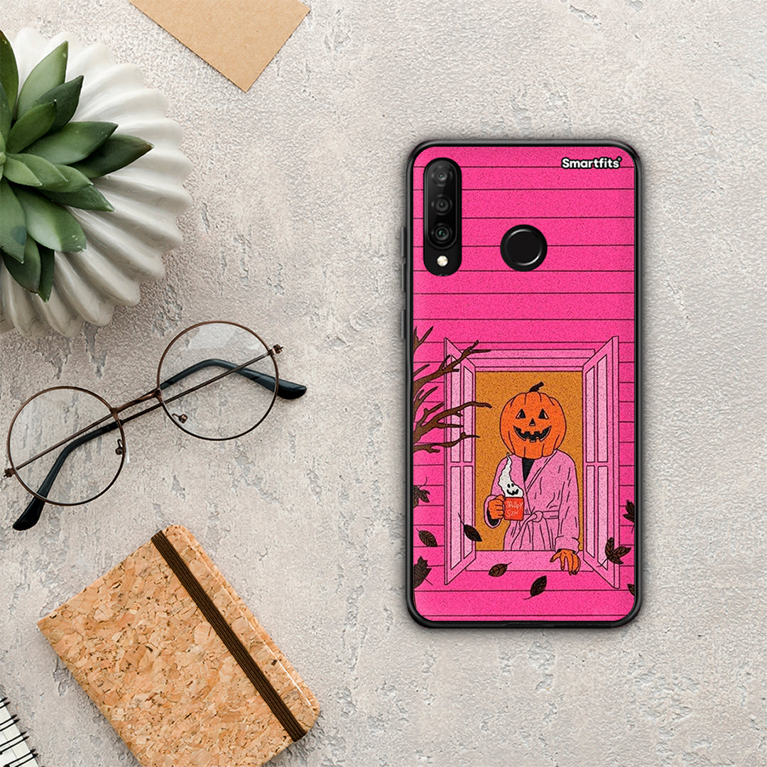 Θήκη Huawei P30 Lite Halloween Pumpkin Lady από τη Smartfits με σχέδιο στο πίσω μέρος και μαύρο περίβλημα | Huawei P30 Lite Halloween Pumpkin Lady case with colorful back and black bezels