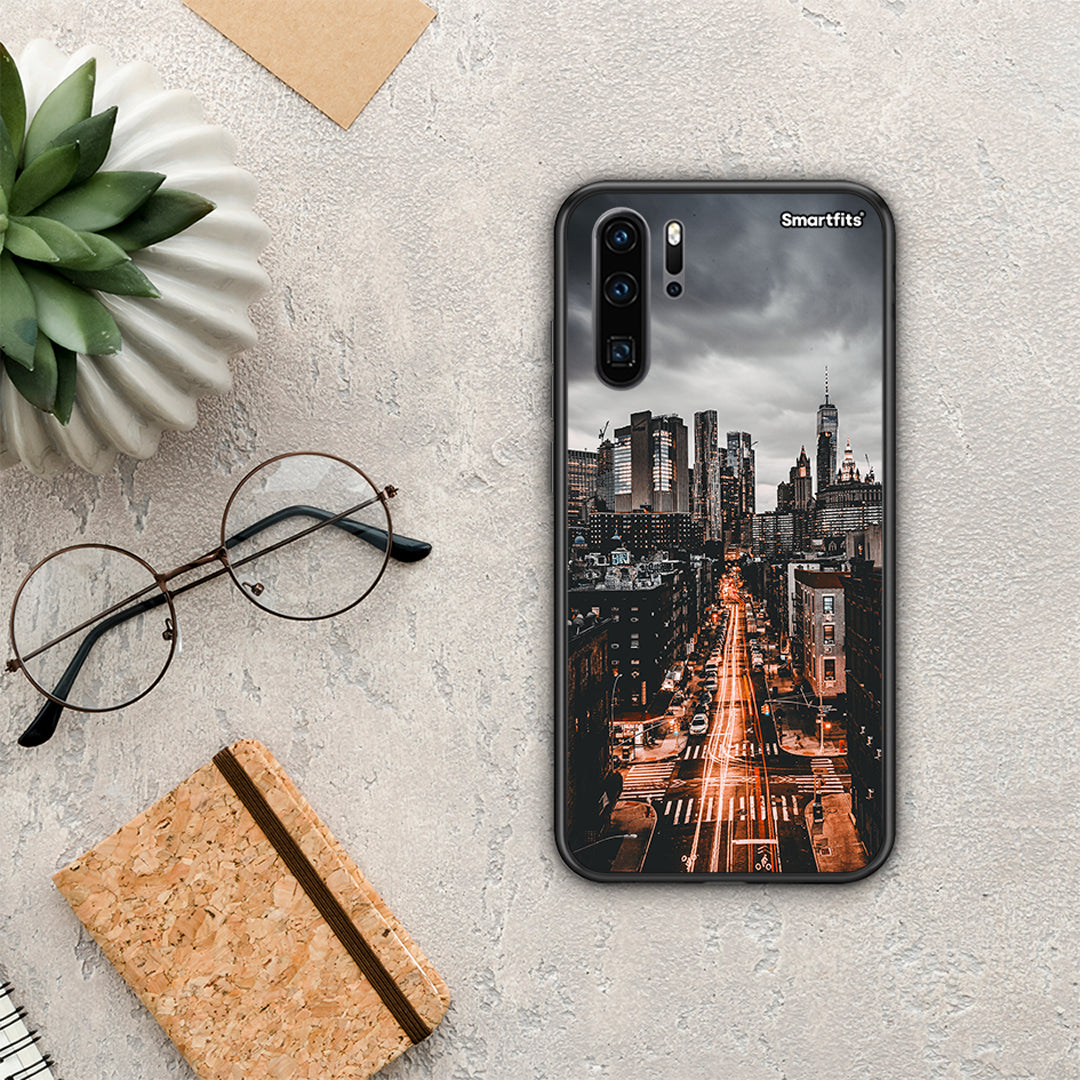 Θήκη Huawei P30 Pro City Lights από τη Smartfits με σχέδιο στο πίσω μέρος και μαύρο περίβλημα | Huawei P30 Pro City Lights case with colorful back and black bezels