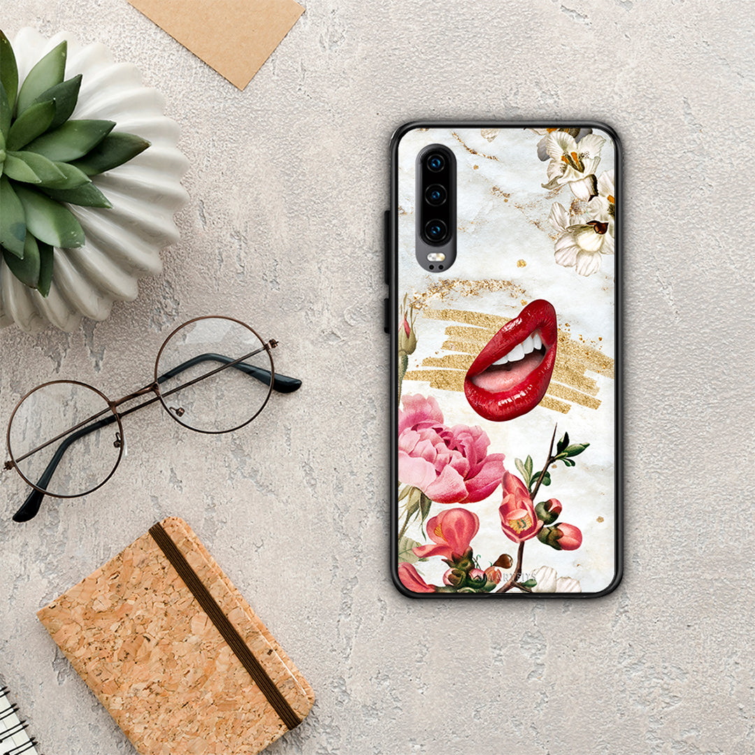 Θήκη Huawei P30 Red Lips από τη Smartfits με σχέδιο στο πίσω μέρος και μαύρο περίβλημα | Huawei P30 Red Lips case with colorful back and black bezels