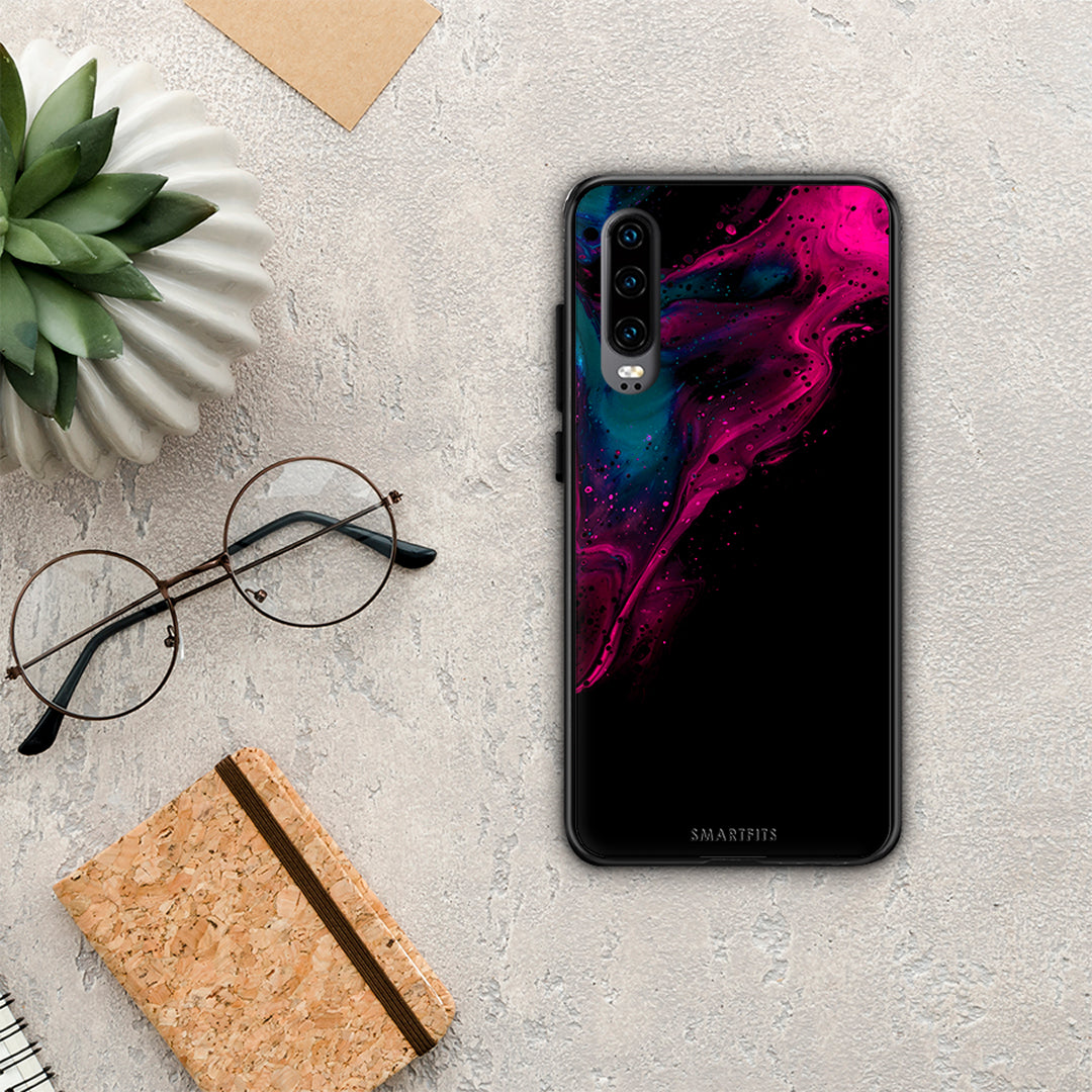Θήκη Huawei P30 Pink Black Watercolor από τη Smartfits με σχέδιο στο πίσω μέρος και μαύρο περίβλημα | Huawei P30 Pink Black Watercolor case with colorful back and black bezels