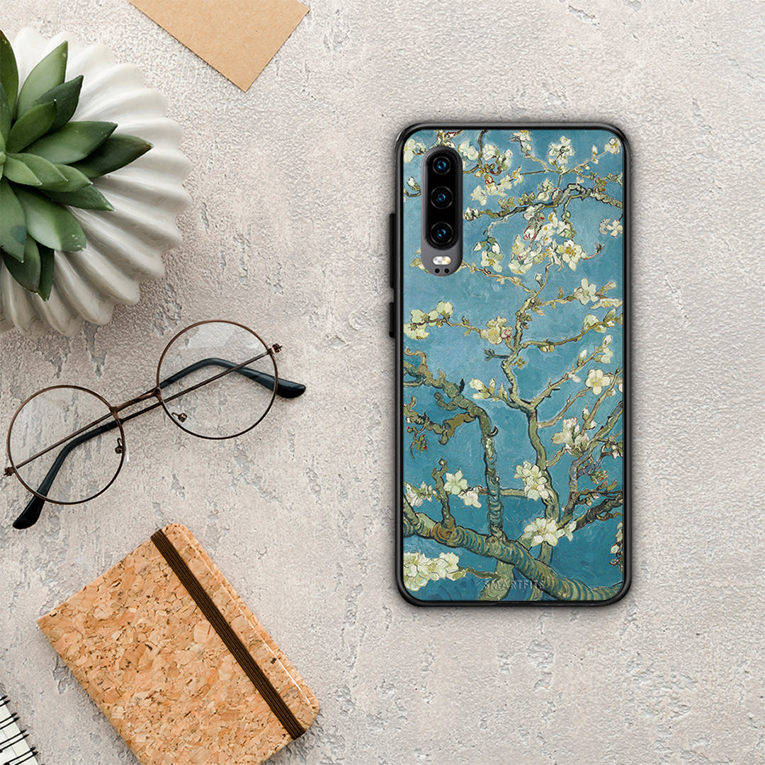 Θήκη Huawei P30 White Blossoms από τη Smartfits με σχέδιο στο πίσω μέρος και μαύρο περίβλημα | Huawei P30 White Blossoms case with colorful back and black bezels