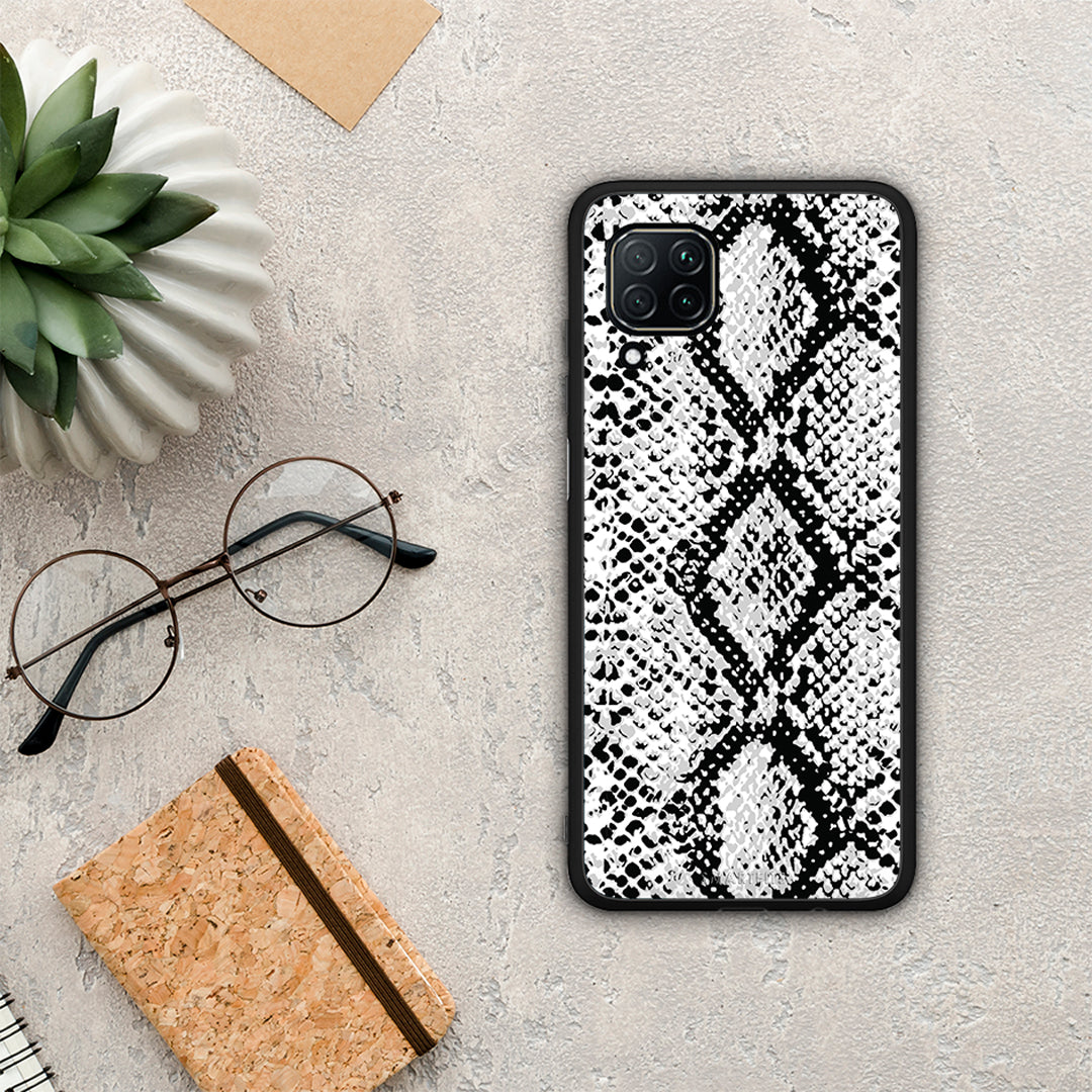 Θήκη Huawei P40 Lite White Snake Animal από τη Smartfits με σχέδιο στο πίσω μέρος και μαύρο περίβλημα | Huawei P40 Lite White Snake Animal case with colorful back and black bezels