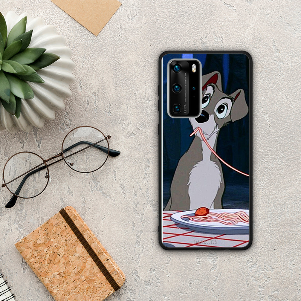 Θήκη Αγίου Βαλεντίνου Huawei P40 Pro Lady And Tramp 1 από τη Smartfits με σχέδιο στο πίσω μέρος και μαύρο περίβλημα | Huawei P40 Pro Lady And Tramp 1 case with colorful back and black bezels