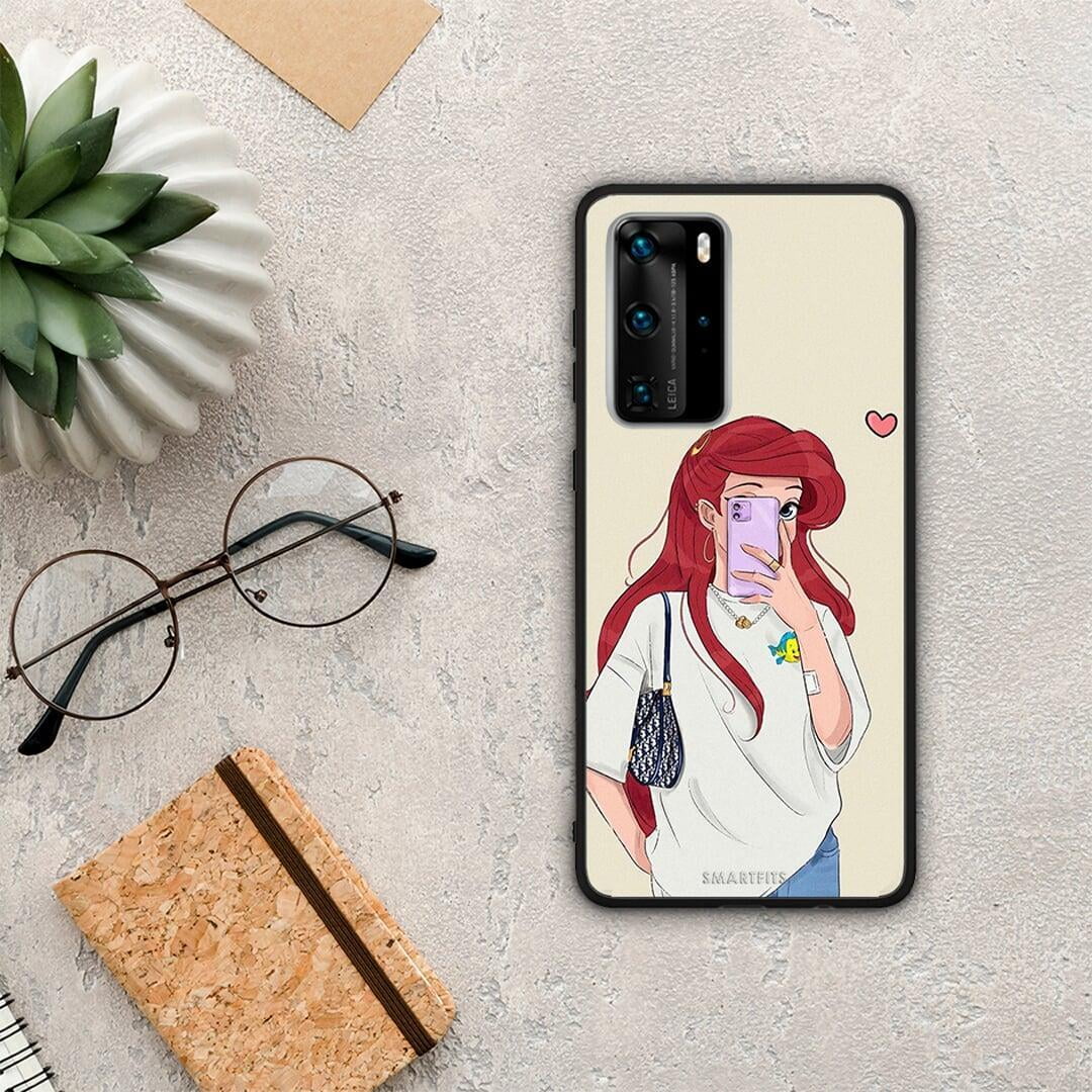 Θήκη Huawei P40 Pro Walking Mermaid από τη Smartfits με σχέδιο στο πίσω μέρος και μαύρο περίβλημα | Huawei P40 Pro Walking Mermaid case with colorful back and black bezels