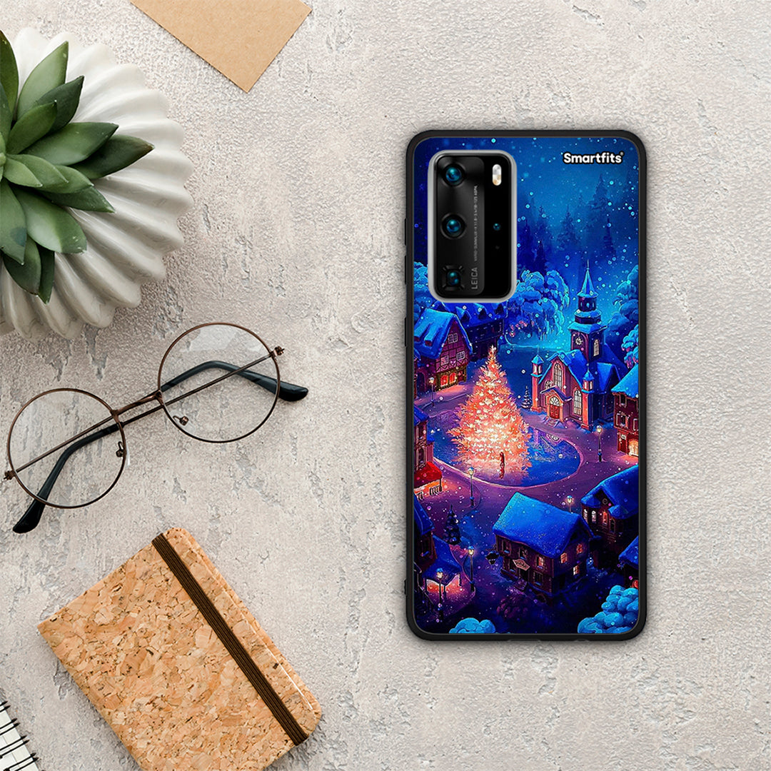 Θήκη Huawei P40 Pro Xmas Village από τη Smartfits με σχέδιο στο πίσω μέρος και μαύρο περίβλημα | Huawei P40 Pro Xmas Village case with colorful back and black bezels