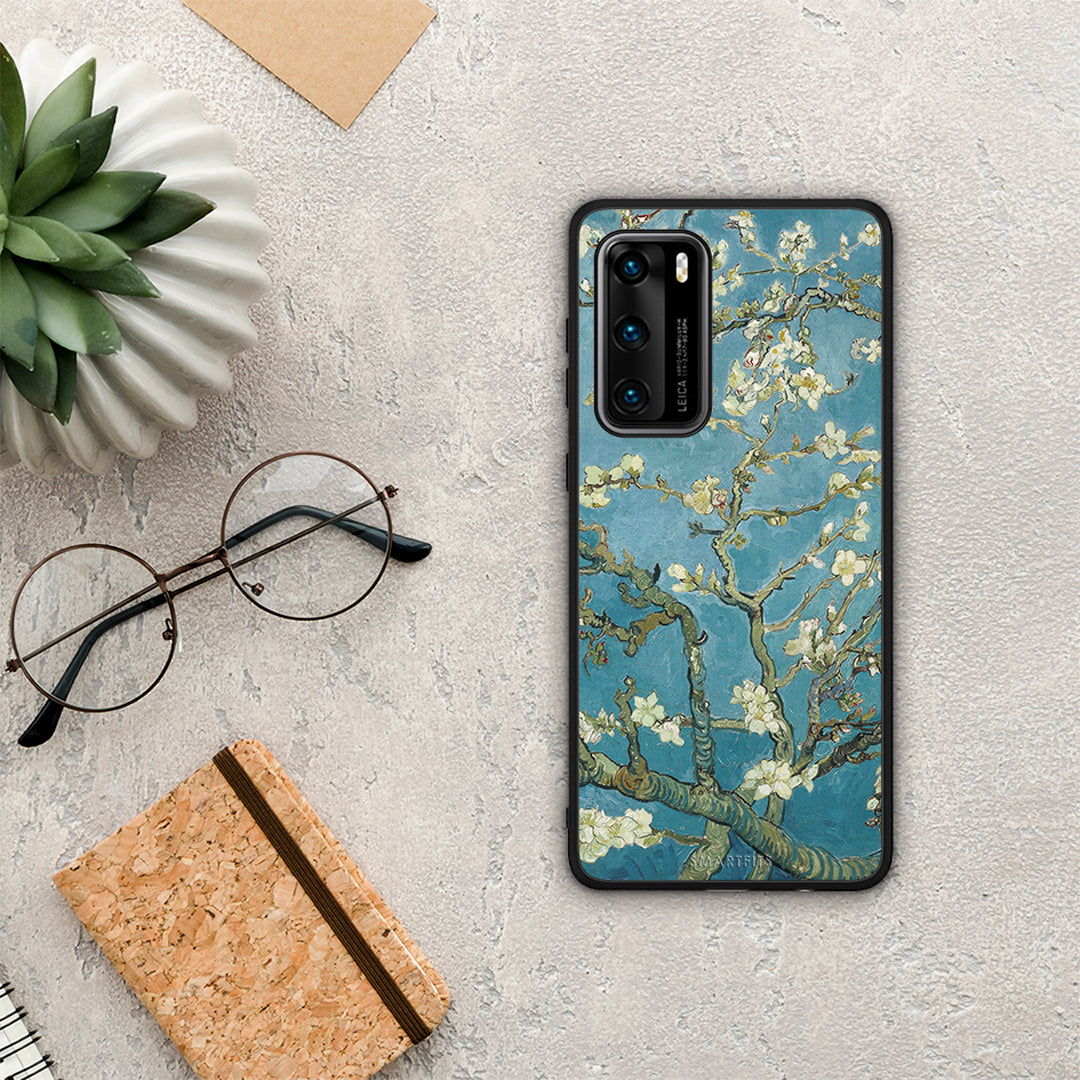 Θήκη Huawei P40 White Blossoms από τη Smartfits με σχέδιο στο πίσω μέρος και μαύρο περίβλημα | Huawei P40 White Blossoms case with colorful back and black bezels