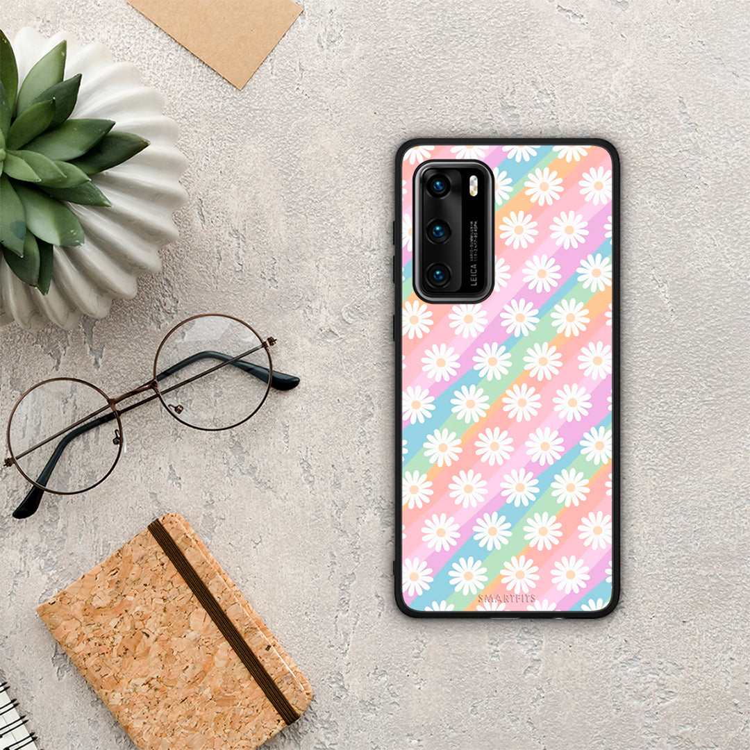 Θήκη Huawei P40 White Daisies από τη Smartfits με σχέδιο στο πίσω μέρος και μαύρο περίβλημα | Huawei P40 White Daisies case with colorful back and black bezels