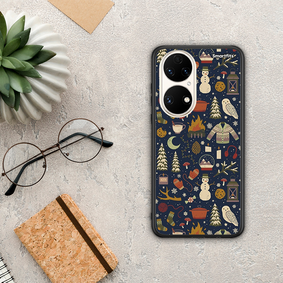 Θήκη Huawei P50 Christmas Elements από τη Smartfits με σχέδιο στο πίσω μέρος και μαύρο περίβλημα | Huawei P50 Christmas Elements case with colorful back and black bezels