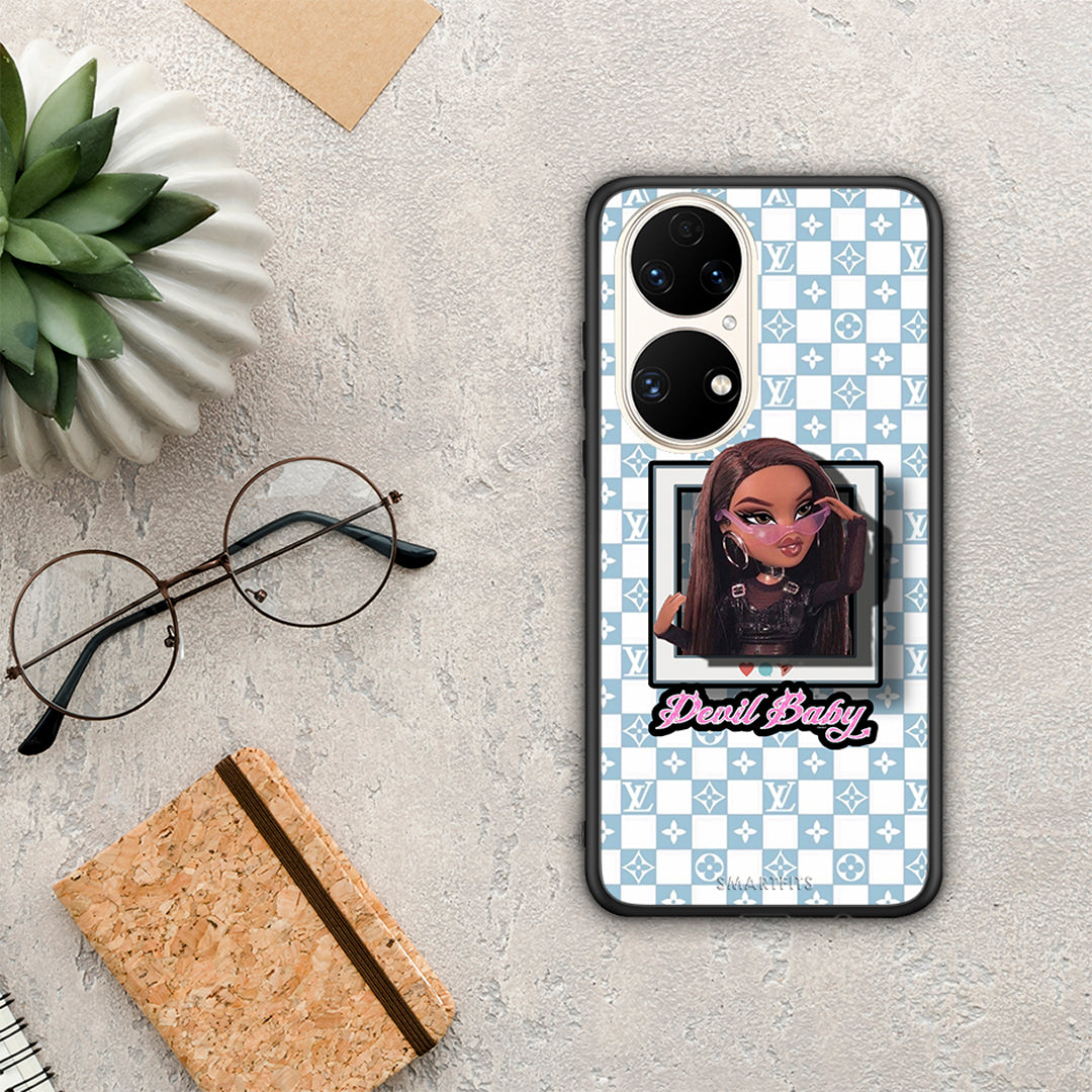 Θήκη Αγίου Βαλεντίνου Huawei P50 Devil Baby από τη Smartfits με σχέδιο στο πίσω μέρος και μαύρο περίβλημα | Huawei P50 Devil Baby case with colorful back and black bezels