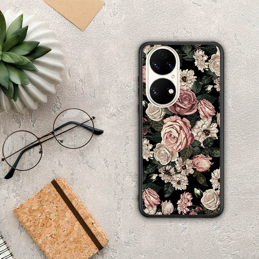 Θήκη Huawei P50 Wild Roses Flower από τη Smartfits με σχέδιο στο πίσω μέρος και μαύρο περίβλημα | Huawei P50 Wild Roses Flower case with colorful back and black bezels