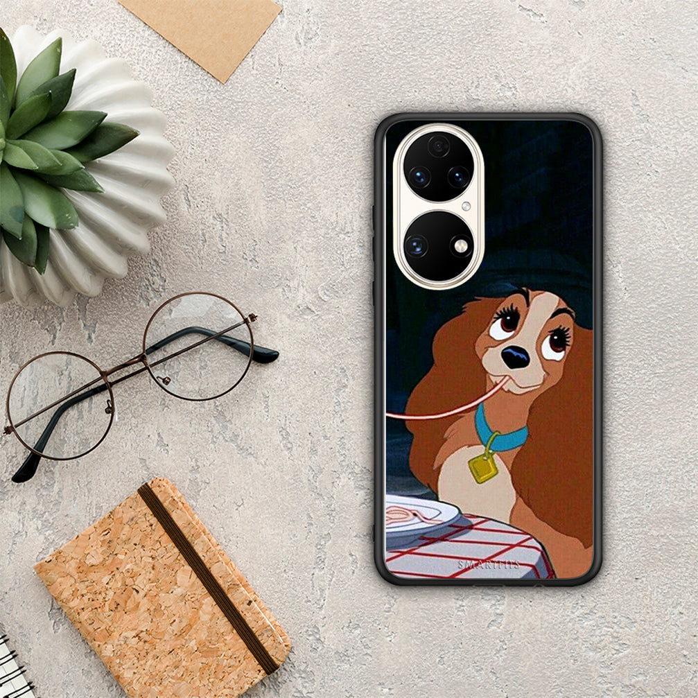 Θήκη Αγίου Βαλεντίνου Huawei P50 Lady And Tramp 2 από τη Smartfits με σχέδιο στο πίσω μέρος και μαύρο περίβλημα | Huawei P50 Lady And Tramp 2 case with colorful back and black bezels