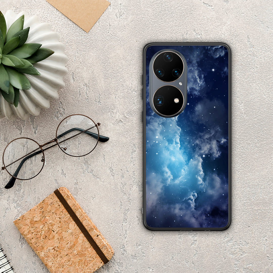 Θήκη Huawei P50 Pro Blue Sky Galaxy από τη Smartfits με σχέδιο στο πίσω μέρος και μαύρο περίβλημα | Huawei P50 Pro Blue Sky Galaxy case with colorful back and black bezels