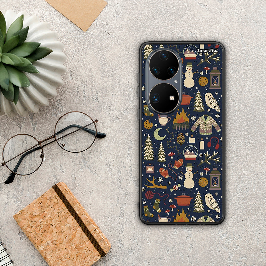 Θήκη Huawei P50 Pro Christmas Elements από τη Smartfits με σχέδιο στο πίσω μέρος και μαύρο περίβλημα | Huawei P50 Pro Christmas Elements case with colorful back and black bezels