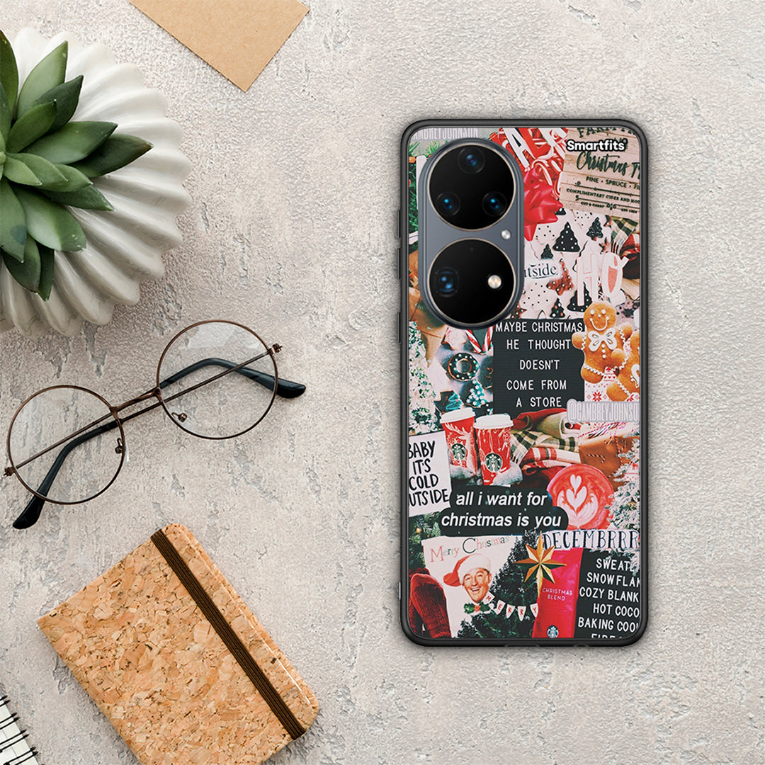 Θήκη Huawei P50 Pro Christmas Happiness από τη Smartfits με σχέδιο στο πίσω μέρος και μαύρο περίβλημα | Huawei P50 Pro Christmas Happiness case with colorful back and black bezels