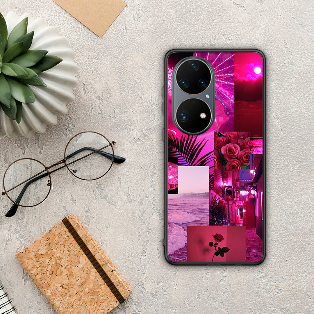 Θήκη Αγίου Βαλεντίνου Huawei P50 Pro Collage Red Roses από τη Smartfits με σχέδιο στο πίσω μέρος και μαύρο περίβλημα | Huawei P50 Pro Collage Red Roses case with colorful back and black bezels