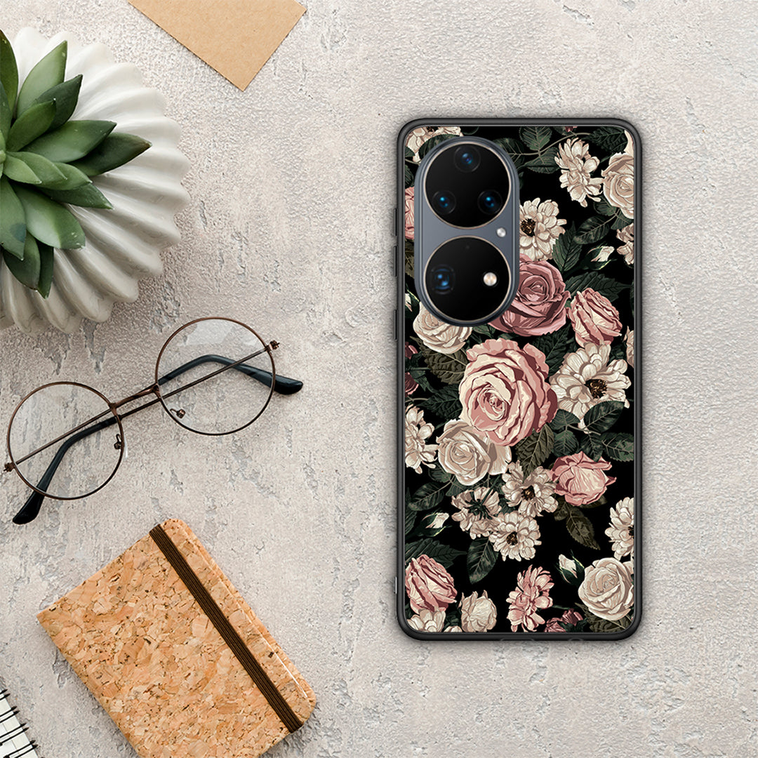 Θήκη Huawei P50 Pro Wild Roses Flower από τη Smartfits με σχέδιο στο πίσω μέρος και μαύρο περίβλημα | Huawei P50 Pro Wild Roses Flower case with colorful back and black bezels